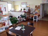 今日の一枚:ロビー 岩盤浴に関する本などもお貸ししています!お声掛けくださいね~。 |